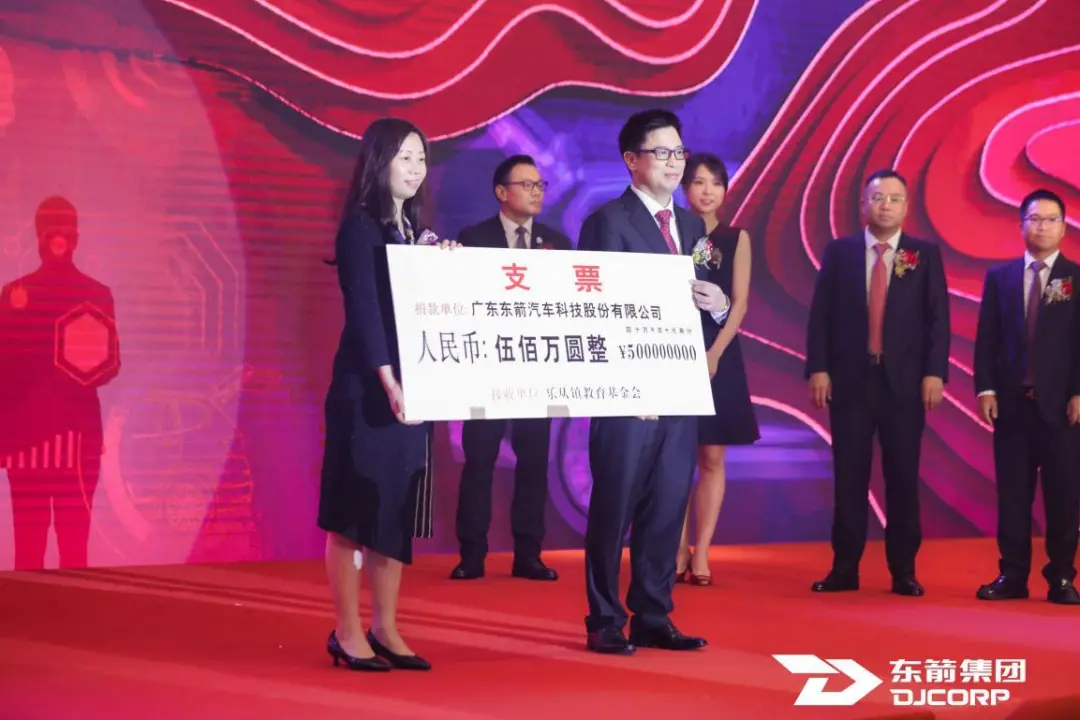 在公司發展的同時,東箭科技始終不忘人才教育是社會發展的第一要素。酒會上,東箭科技向樂從鎮教育基金捐贈500萬元,支持培養更多高尖精人才。
