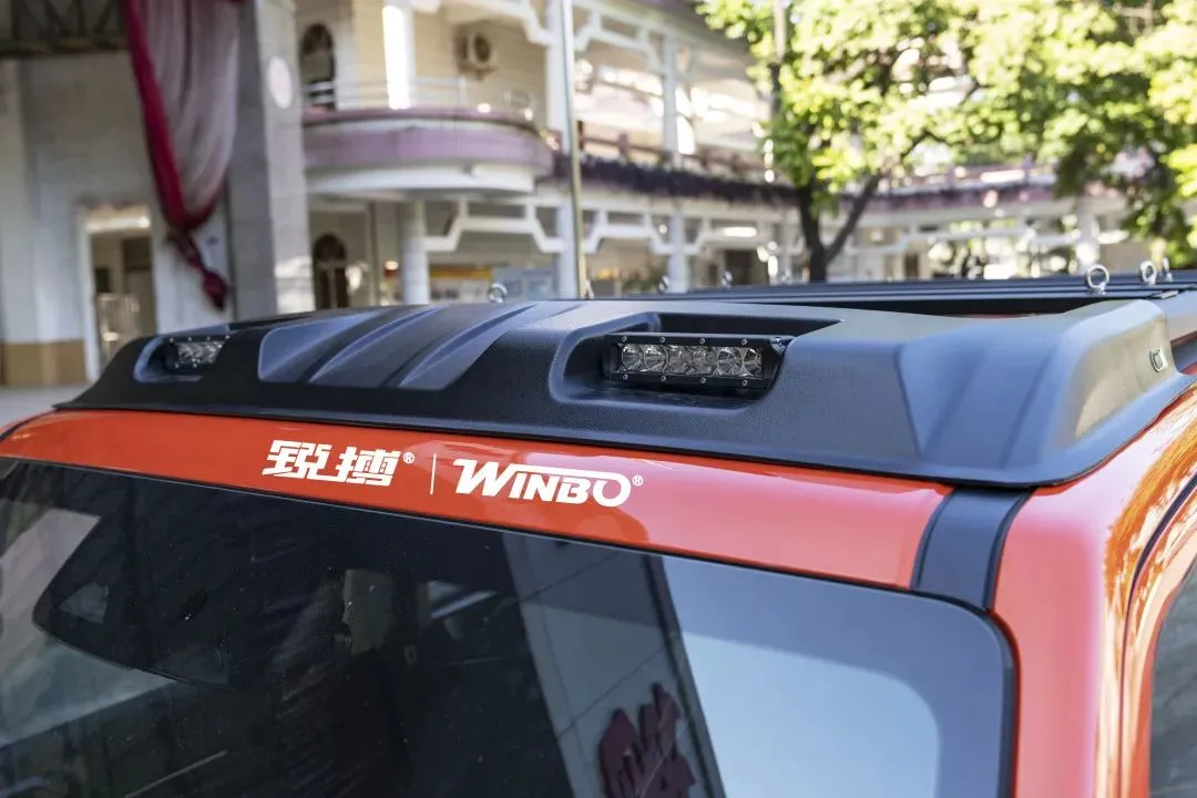 LED高亮度車頂探照燈,采用內嵌式設計,與飛星系列行李框吸塑板緊密貼合,不增加車頂高度,亮燈后猶如黑夜中犀利的目光,照亮前方的路。